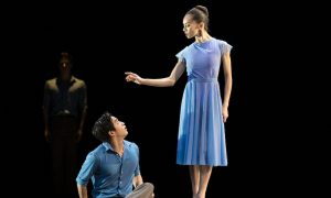 Act 2 opens with an astonishing solo for the character of Death, danced by Crystal Pite. An inky spider on a bare white background, or loaded calligraphic brushstrokes of movement on a clean page, she moves like rustling black velvet.