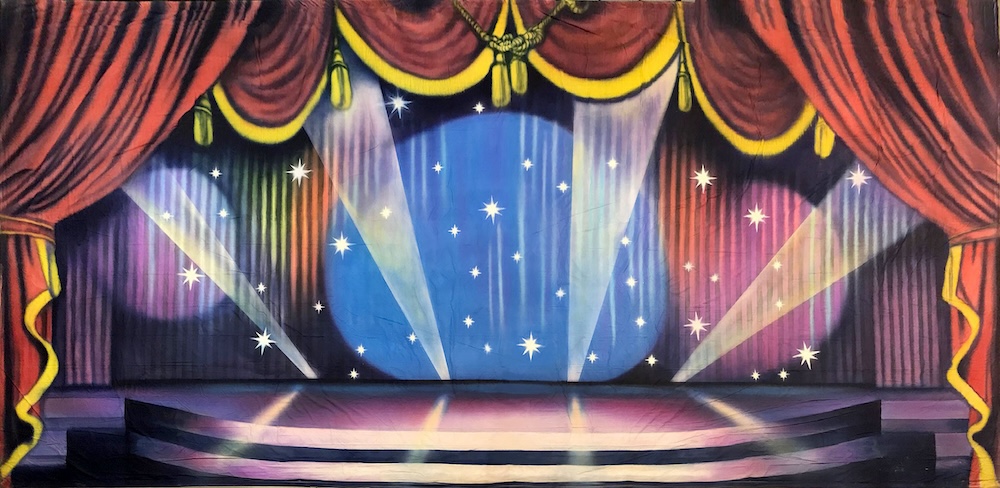 There are more advantages to using a physical, painted backdrop. Christo says they are easy to hang and use. “My backdrops have grommets and ties across the top for hanging. Most stages have the hardware in place to put them up.” The company also conveniently provides return shipping labels. When the renter is finished with a production, they simply fold, box, place the label, and drop the package off at UPS. Many facilities do not have the necessary equipment to handle the requirements of digitals. Projectors are expensive and prone to breakage. “Painted backdrops don’t break!” says Christo.