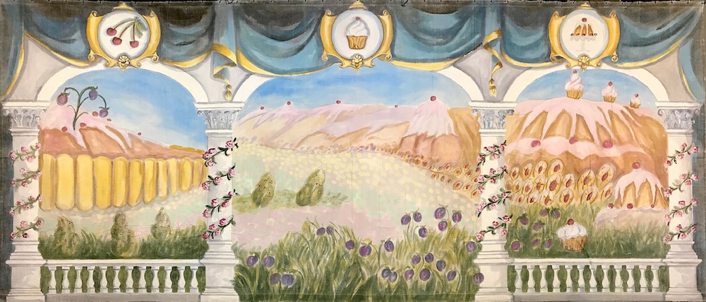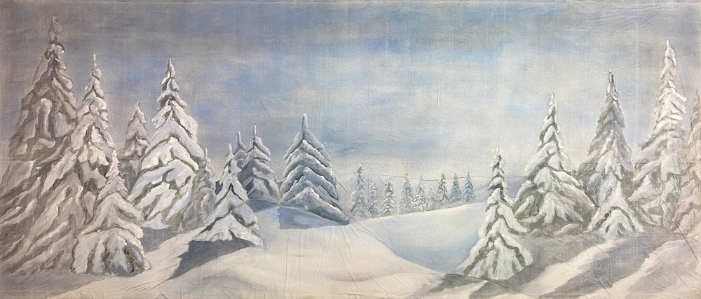From concept to completion, a new backdrop can take five to six weeks. “First, we try to come up with ideas that we know will last through the years. Obviously, there are some designs that will wear out their welcome due to it becoming outdated or if a fad passes,” Christo says. They capitalize on a design quickly if the company thinks it falls into the fad category, expanding their inventory with as many ideas as possible. Christo comments, “We also have to weigh whether we could use one more snow forest for our Nutcracker inventory, for example, or if we want to create a completely new design that we do not have.” Like anything in theater, he says, most of the time, it simply comes down to timing.