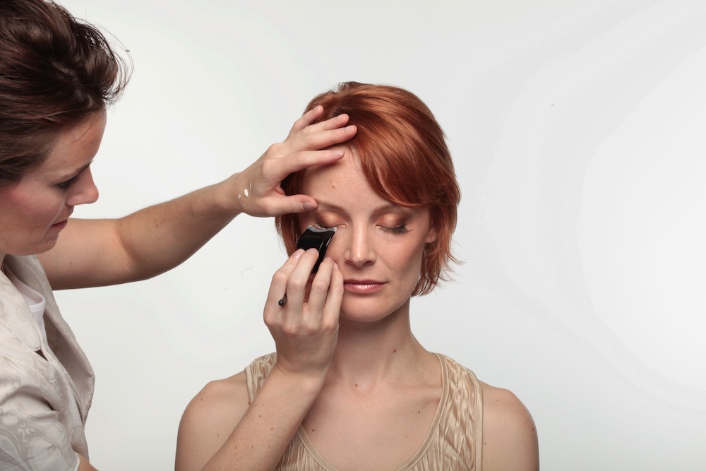 Start by applying your foundation, concealer and powder. For stage/performance makeup, you want to start with a more matte foundation. Then apply concealer only where you need it. Don’t forget to apply foundation or an eye primer to the lid so that your shadow stays all day.